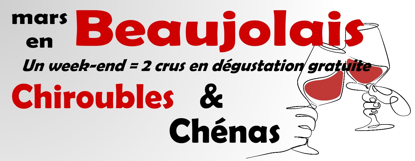 1 week-end = 2 appellations Pour cette première dégustation du mois des Beaujolais, nous ouvrons un vin de Chiroubles et un vin de Chénas. C'est l'occasion de (re)découvrir les crus de Beaujolais qui sont de très beaux vins, expressif avec un bon équilibre sur la fraicheur, le fruit et la matière.