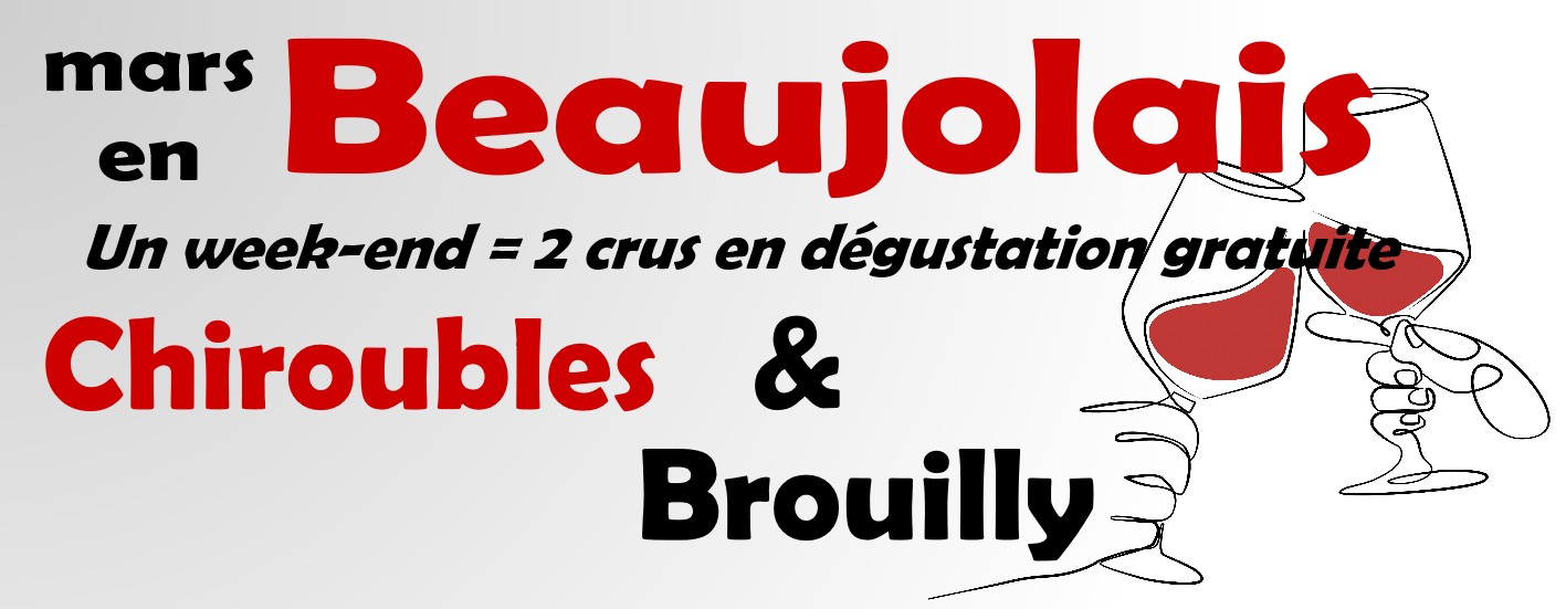 1 week-end = 2 appellations Pour cette deuxième dégustation du mois des Beaujolais, nous ouvrons un vin de Chiroubles et un vin de Brouilly. C'est l'occasion de (re)découvrir les crus de Beaujolais qui sont de très beaux vins, expressif avec un bon équilibre sur la fraicheur, le fruit et la matière.