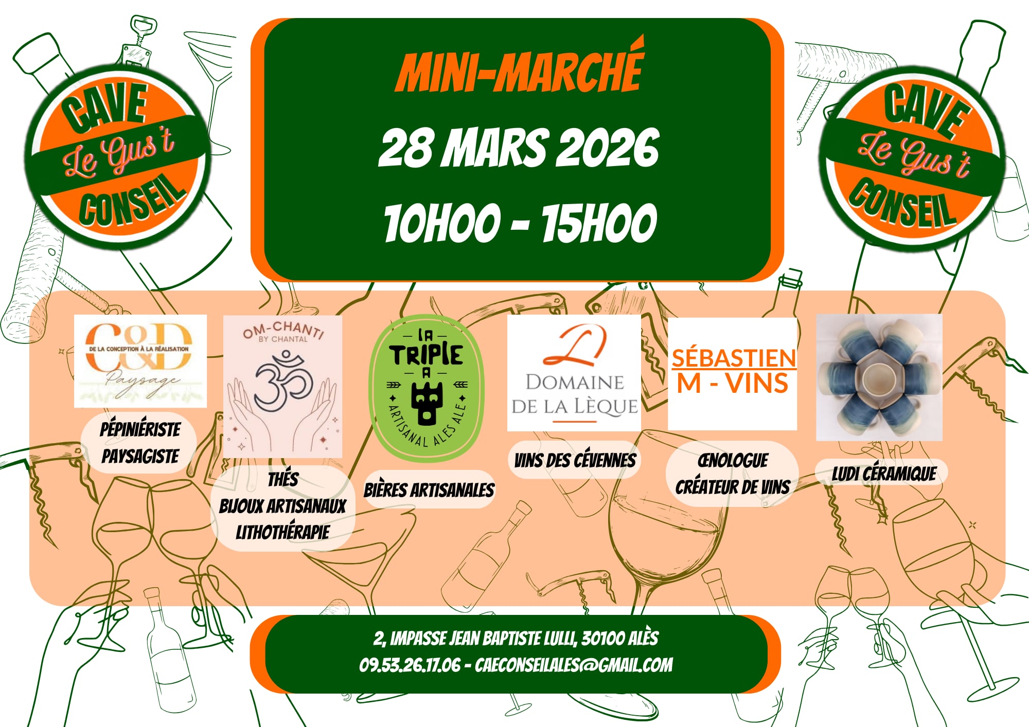 Venez découvrir notre 2ème mini-marché artisanal – Samedi 28 mars ! Bonjour à toutes et à tous, Nous avons le plaisir de vous convier à notre deuxième mini-marché artisanal, qui se tiendra samedi 28 mars de 10h00 à 15h00 sur le parking de la CAVE CONSEIL ALÈS, situé au 2, impasse Jean Baptiste Lulli (rocade-Est […]