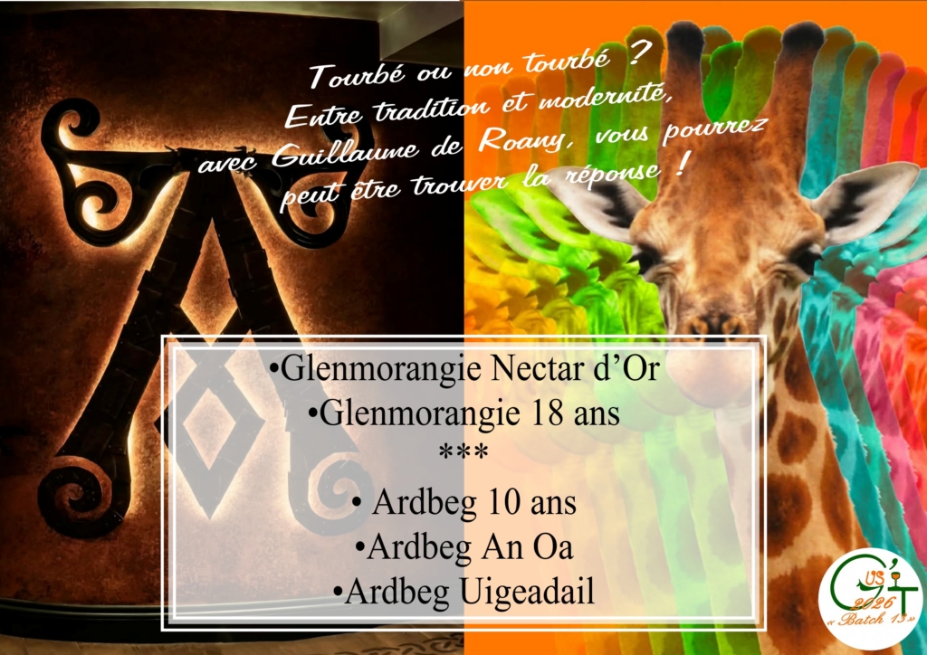 C’est une table de dégustation où il fait bon déguster la tradition des whiskies écossais… La tourbe intense d’Islay avec Ardbeg et la fraicheur des Highlands avec Glenmorangie ! Le tout saupoudré de la passion de Guillaume de Roany…
